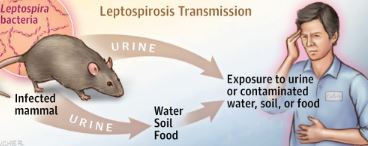 렙토스피라증은 병원성 렙토스피라균에 감염된 쥐 등의 설치류나 소, 개, 돼지 등의 소변 등에 노출되어 발생되는데 수상스키나 수영 등 야외활동 중 오염된 물을 마시거나, 상처 등에 렙토스피라균이 들어갔을 경우 발병합니다.
