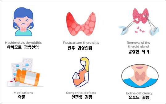 바이러스 감염과 출산 후유증으로 생기는 갑상선염도 갑상선에 문제를 일으켜 호르몬 분비를 방해할 수 있습니다.