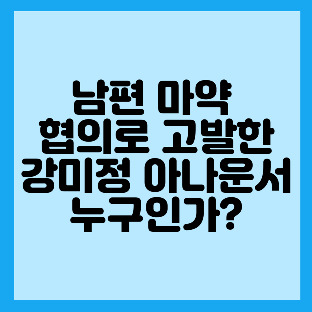 강미정 아나운서가 남편의 마약 협의를 공개적으로 고발하였으며, 남편은 만약을 하지 않았다면 강민정 아나운서를 역고소해 진실 공방이 일어나고 있습니다.