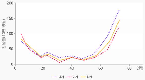 | 연도 | 발병율 (/10만명당) | 유병율(/1,000명당) |