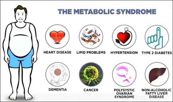 고혈압, 고중성지방혈증, 낮은 고밀도콜레스테롤, 당뇨병 등을 비롯해 각종 성인병이 복부 비만과 함께 발생하는