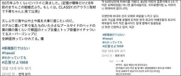 3월 15일 류준열과 한소희 하와이 여행 목격담이 퍼지게 되었습니다. 일본인 누리꾼은 " 호텔에 도착한 한국 최고의 여배우와 톱 남자배우들이 뒹굴뒹굴하고 있다"라며 류준열과 한소희의 출연작인 ' 응답하라 1988"과 알고 있지만"등을 태그 하였습니다.