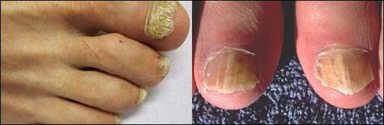 발톱 무좀은 종종 부스러기 모양으로 발톱을 변형시킬 수 있습니다. 발톱 표면에 움푹 파인 부분이나 부풀어 오른 부분이 나타날 수 있습니다.