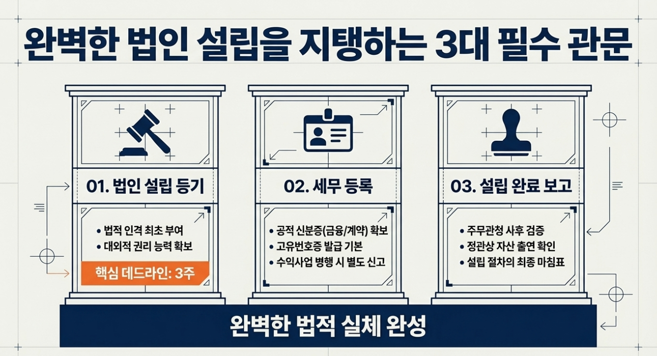 하지만 허가증은 법인이 세상에 나오기 위한 '출생 증명서'일 뿐, 법적으로 완벽한 실체를 갖추기 위해서는 반드시 이행해야 할 후속 절차들이 남아있습니다.
