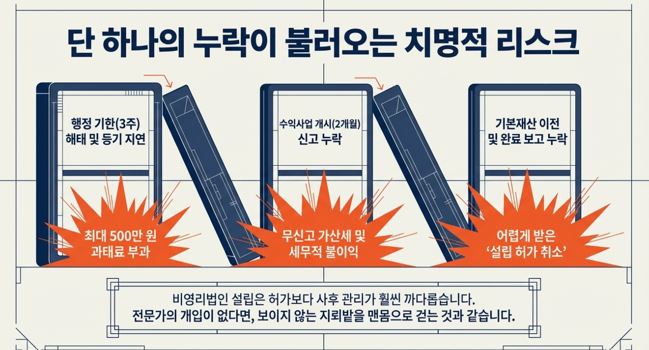 전문가가 필요한 이유 비영리법인 설립은 허가만큼이나 사후 관리가 까다롭습니다.