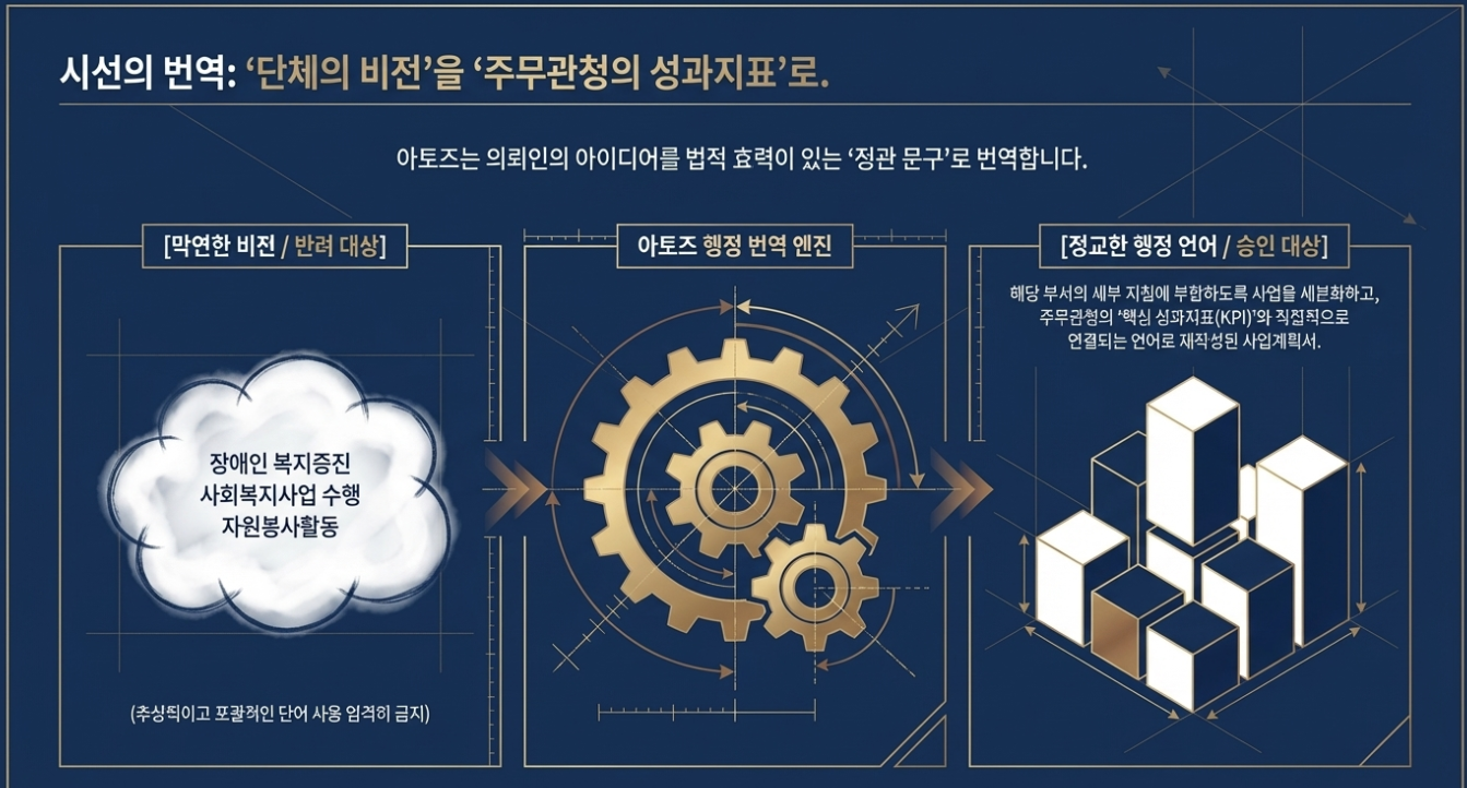 의뢰인의 아이디어를 법적 효력이 있는 '정관 문구'와 행정 관료들이 선호하는 '사업계획서'로 번역합니다.