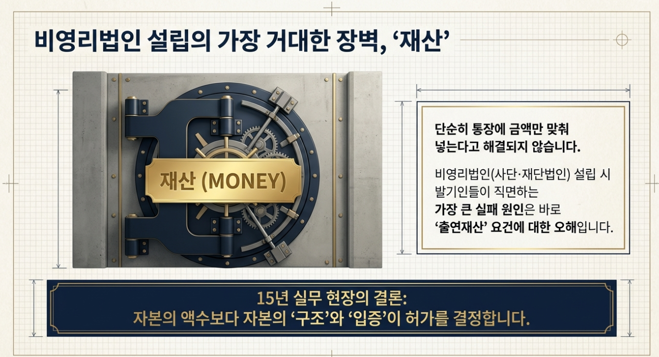 비영리법인 설립 허가의 핵심은 발기인들의 '사업에 대한 진정성'을 객관적인 '재산의 건전성'으로 행정청에 증명해 내는 것입니다.