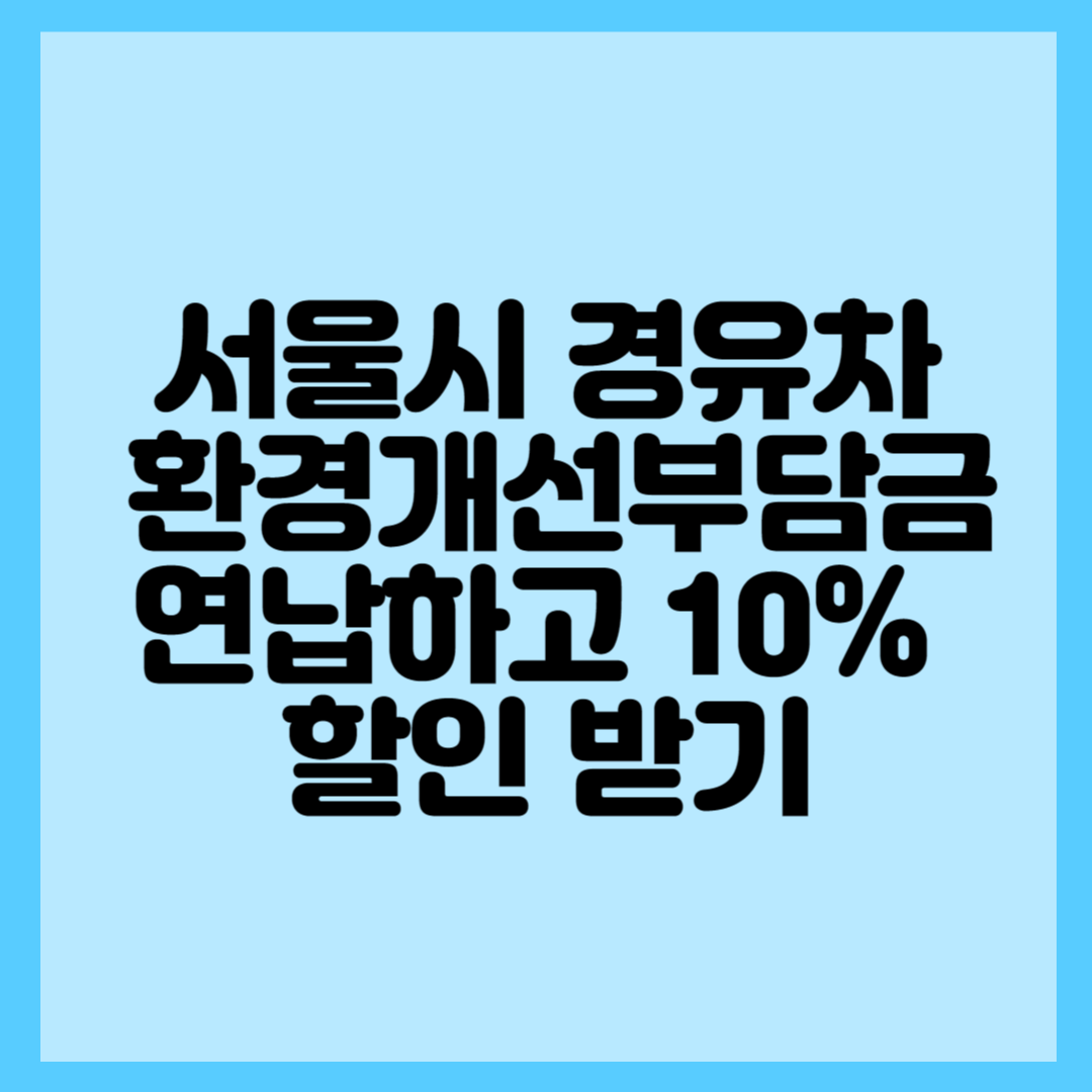 서울시는 노후 경유차량 소유자에게 부과하는 자동차 환경개선부담금을 1월 31일까지 일시 납부(연납)하면 부과금액의 10%를 감면하기로 하였습니다.