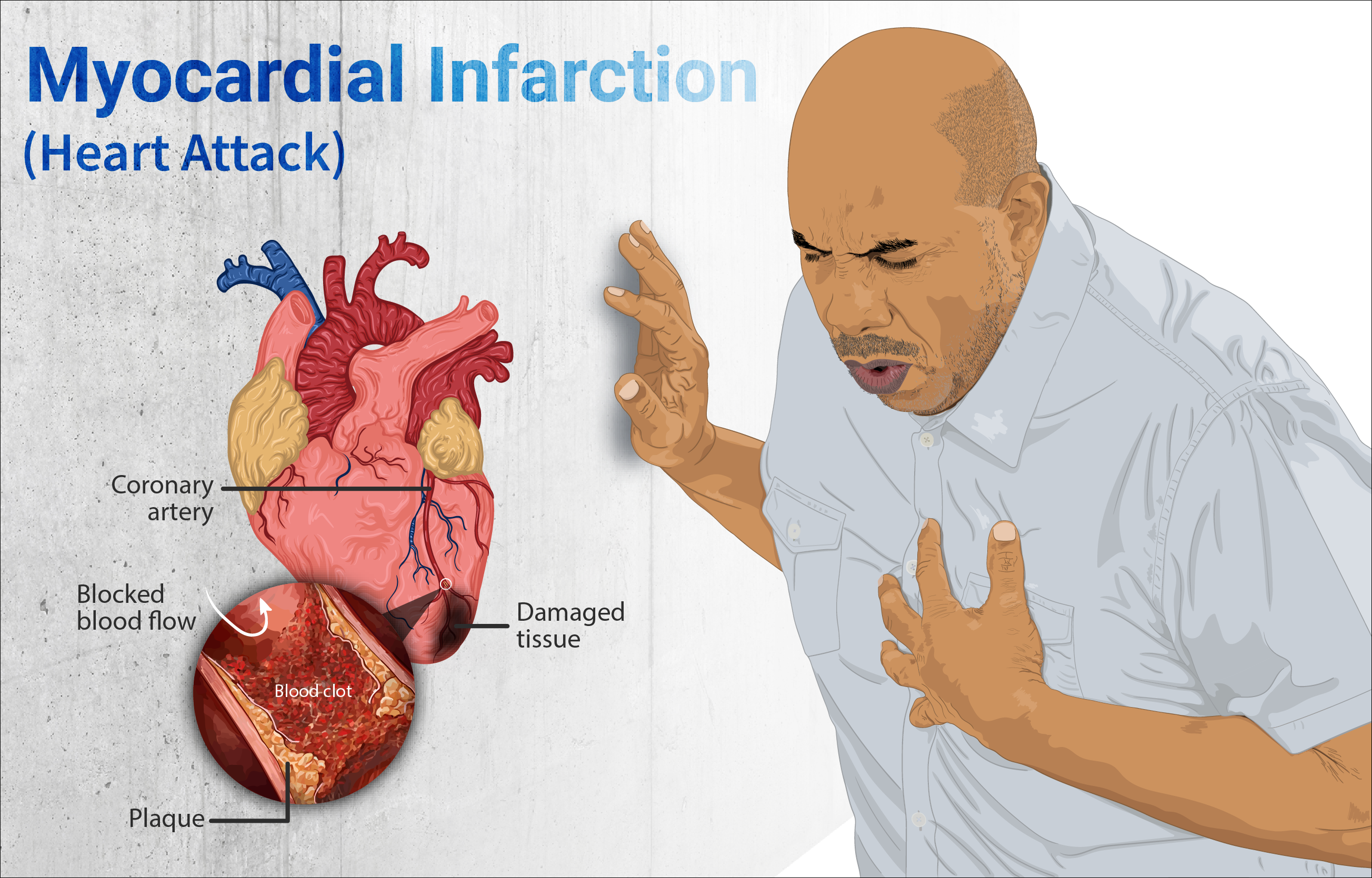 심근경색은 심장 근육인 심근(Heart muscle)은 일반적으로 심장 공급 동맥 중 하나가 혈전 또는 혈전으로 막혀 심근 조직에 혈액 공급이 부족하여 발생하는 심장질환입니다.