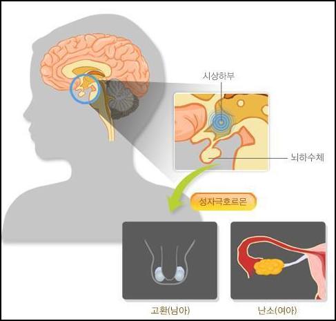 뇌하수체에서 성전자극호르몬의 분비 증가가 조기에 활성화되어 일어나는 경우입니다