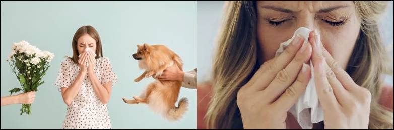 개, 고양이 등의 애완동물의 털이나 비듬은 아주 작은 입자로 공기 중에 떠다니다가 코를 통해 폐로 유입되어 알레르기 증상은 유발합니다.