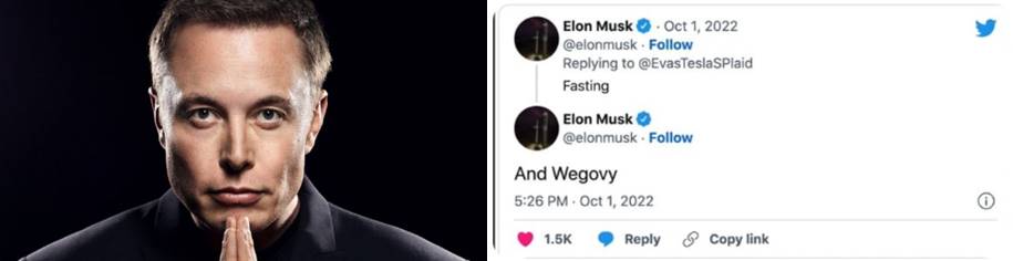 22년 10월 일론 머스크 테슬라 CEO는 트위터에서 다이어트 비결을 묻는 팬의 질문에 이렇게 답변하였습니다;