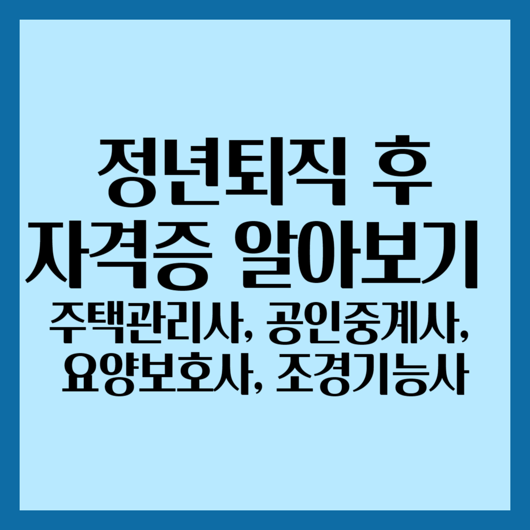 그럼 정년퇴직 후에도 일할 수 있는 자격증에 대해서 알아보도록 하겠습니다.