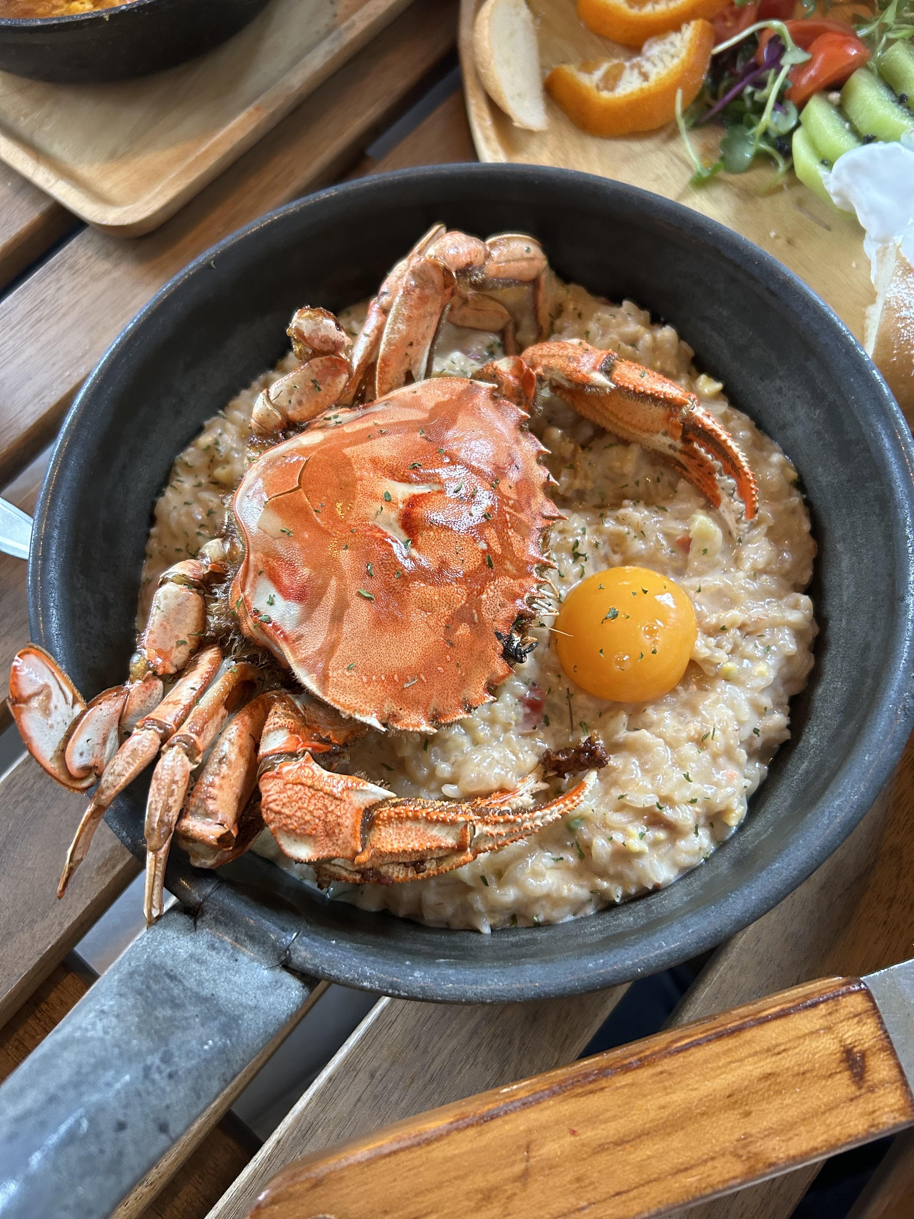 저는 황게리조또, 오늘의 브런치, 흑돼지 에그인헬, 한라봉 주스, 딱새우 감바스 (면 추가)를 주문했습니다
