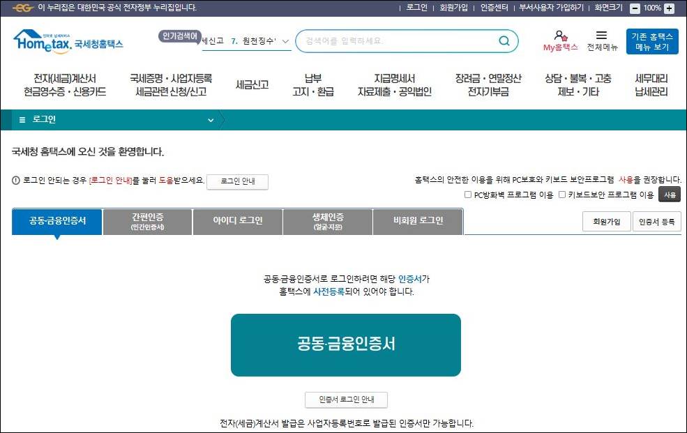 1. 국세청 홈택스 접속