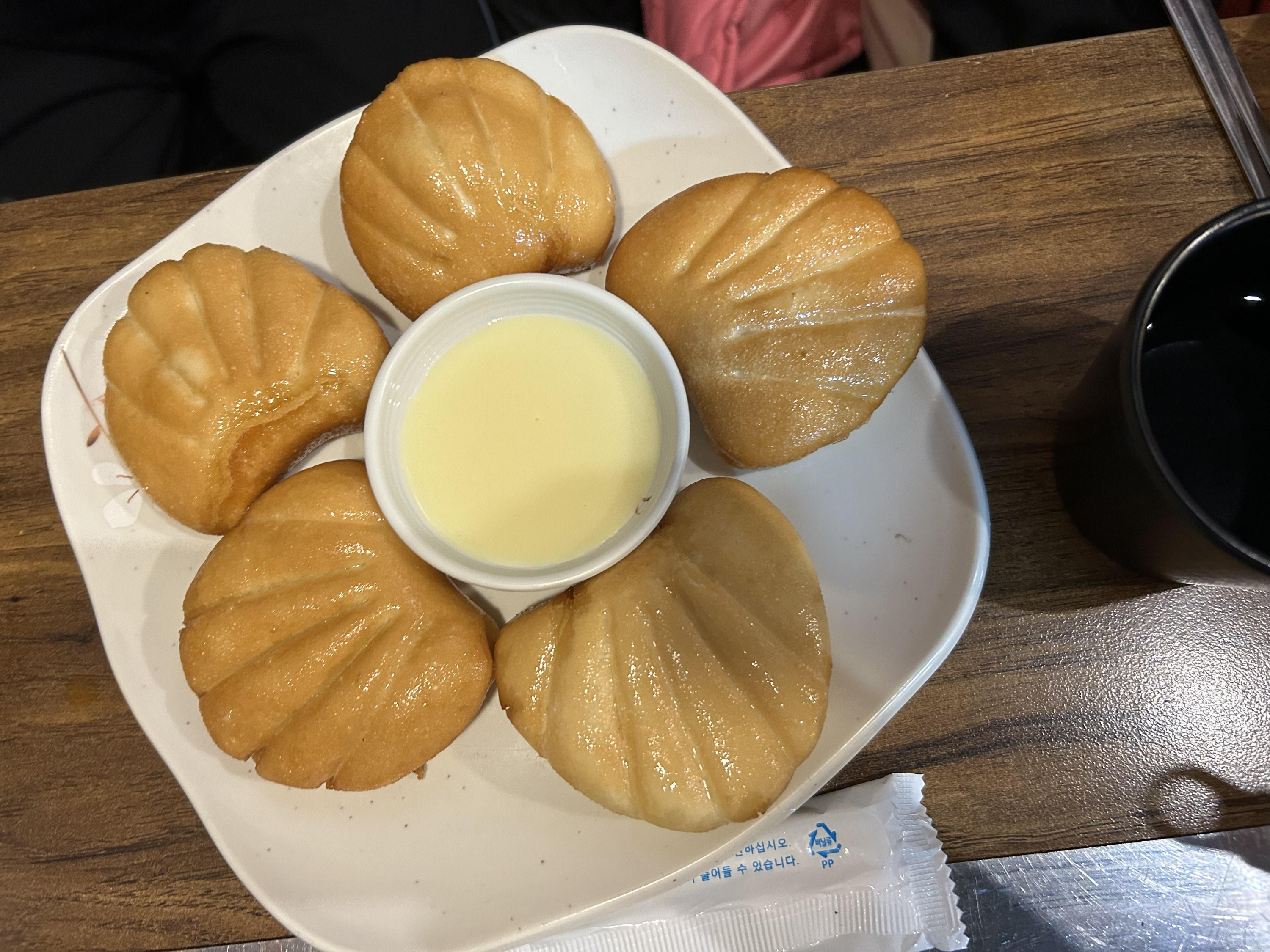 설탕물을 묻힌 꽃빵을 연유에 찍어 먹는 건데 참 달달하고 맛있답니다 ^^