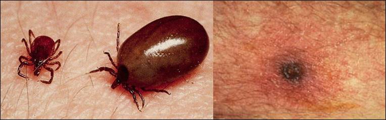 진드기에 물린 부위에 1cm 정도의 가피가 나타나며, 붉고 경화된 병변이 시간이 지나면서 수포를 형성한 후 터져서 흑색으로 착색됩니다.