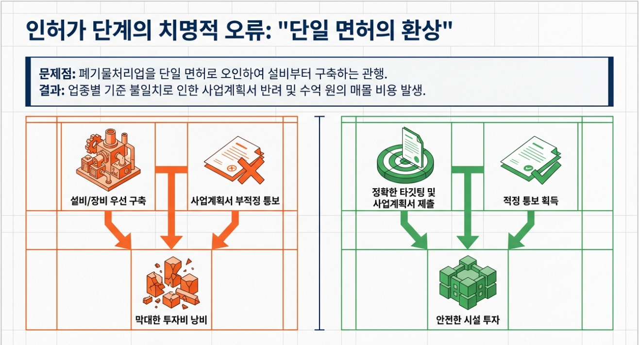 " 대부분의 의뢰인이 겪는 가장 큰 실수는 폐기물처리업을 단일 면허로 오인하여 초기 계획을 세우는 것입니다.