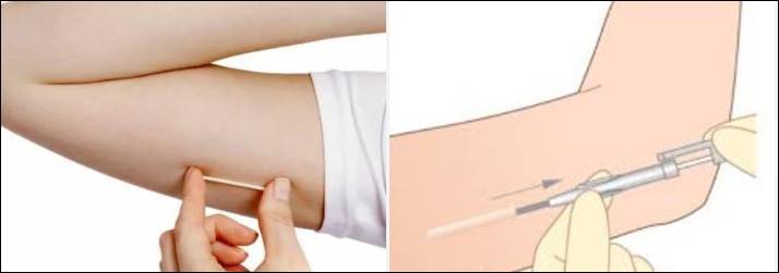 - 위쪽 팔 안쪽 피부 아래쪽에 주사처럼 생긴 기구를 이용하여 삽입합니다.