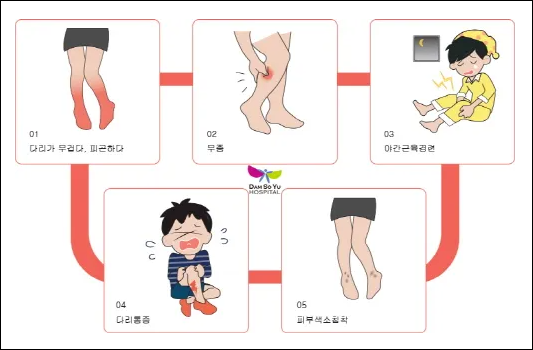 이러한 현상은 발목, 종아리, 대퇴부등에서 나타날 수 있으며, 대개 저녁이 되거나 장시간 서 있거나 앉아 있을 경우 더욱 악화될 수 있습니다.