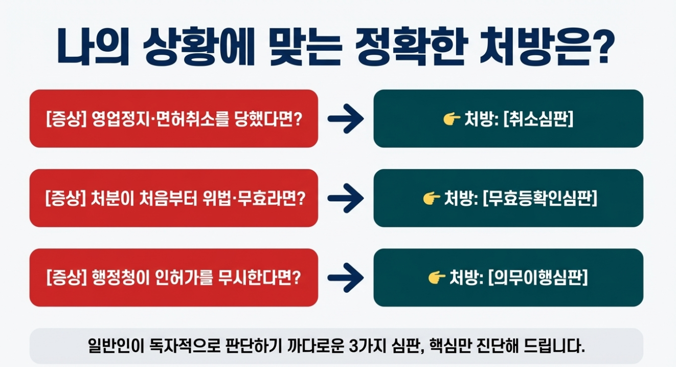 행정심판의 승패는 '내 상황에 맞는 정확한 심판 종류를 선택하고, 그에 맞는 법리적 타격 포인트를 찾는 것'에서 시작됩니다.