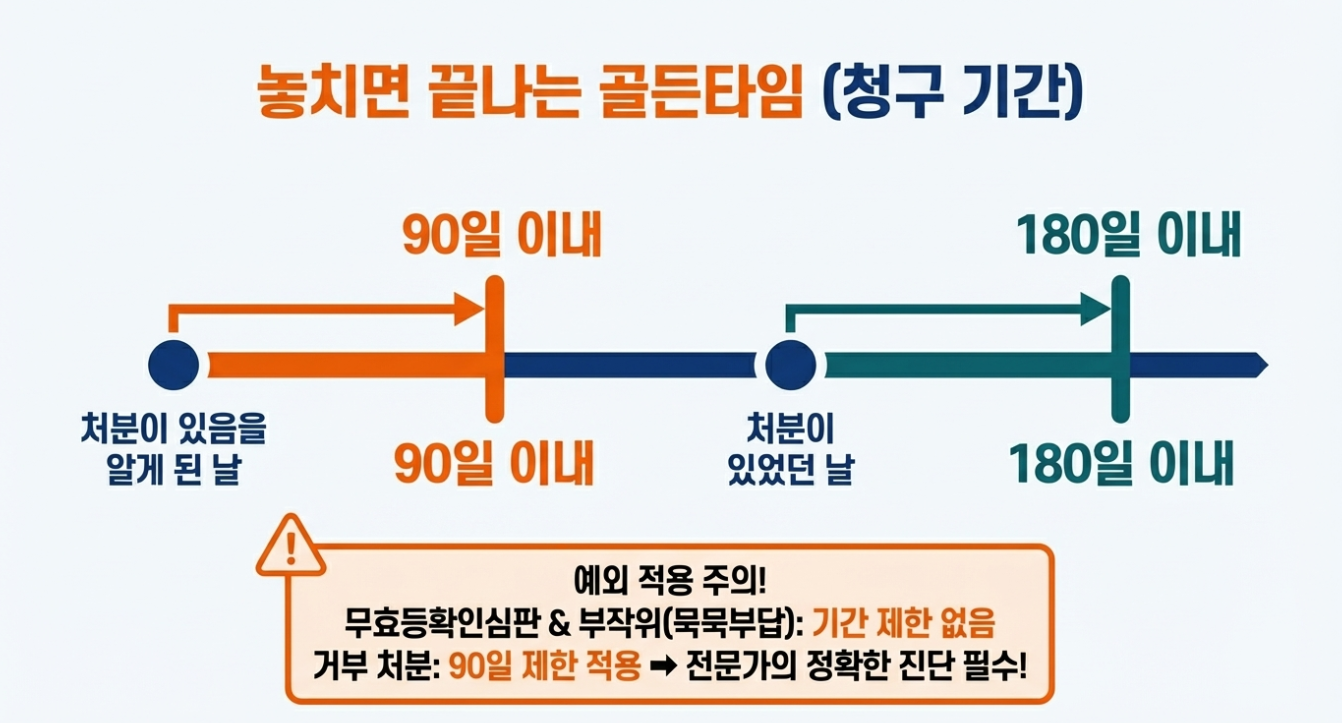 (주의: '거부 처분'은 90일 제한을 받으므로 전문가의 정확한 진단이 필수입니다.)