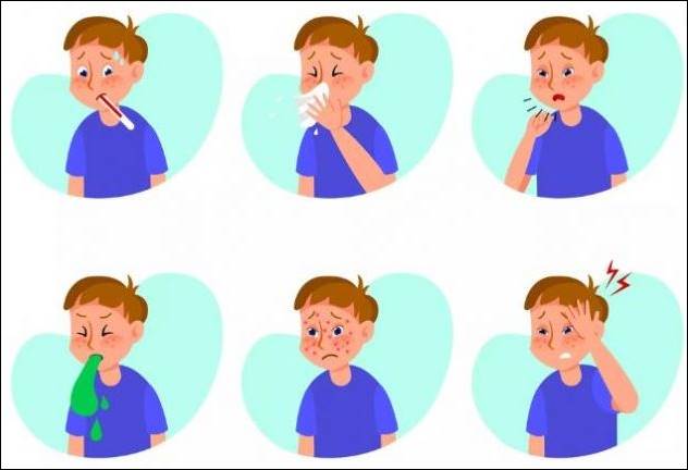 비말 전파로 인해 콧물과 인후통이 나타날 수 있습니다.