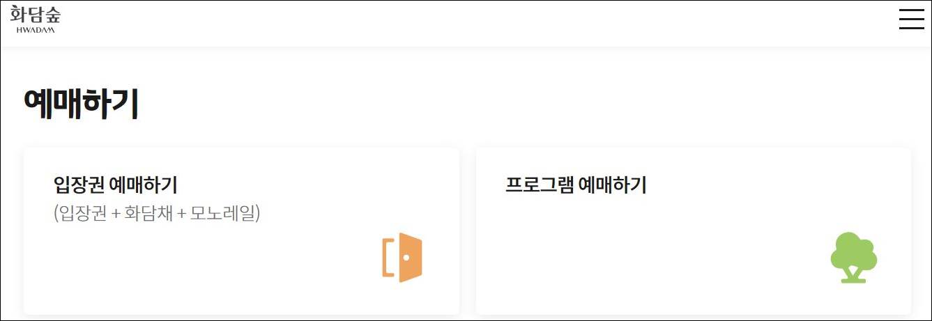 ※ 화담숲 홈페이지를 통해 화담숲 / 화담채 및 모노레일 탑승권을 구매해야 합니다.