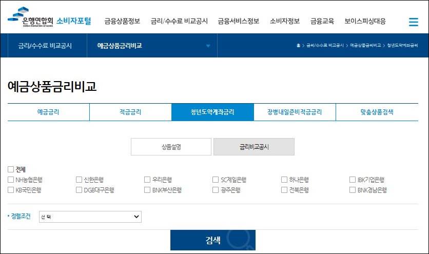 은행별 금리는 은행연합회 홈페이지를 통해서 확인이 가능합니다.