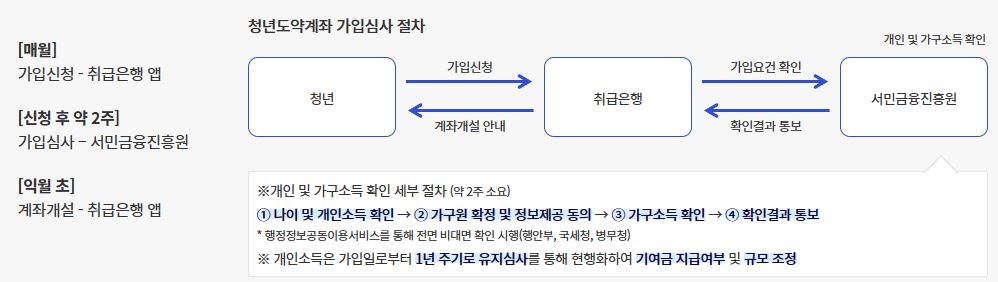 청년도약계좌 가입 및 심사 절차는 아래와 같습니다.