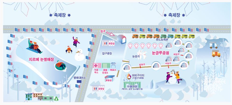 ■ 내용 얼음 미끄럼틀, 방벽 포토존, 이글루 등 얼음 조형