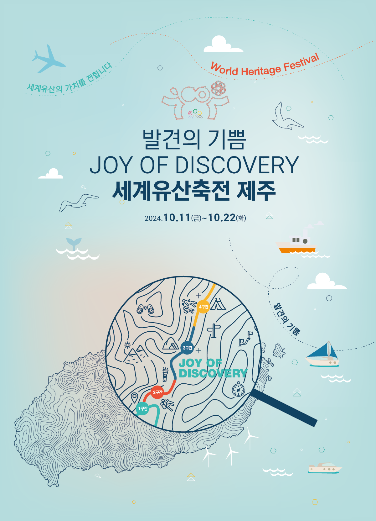 세계유산축전은 국가유산청과 국가유산진흥원이 유네스코 세계유산으로 등재된 국내 세계유산의 가치와 의미를 내·외국인들에게 알리고자 추진하는 사업이며, 올해 세계유산축전 제주의 주제는 "발견의 기쁨"입니다.