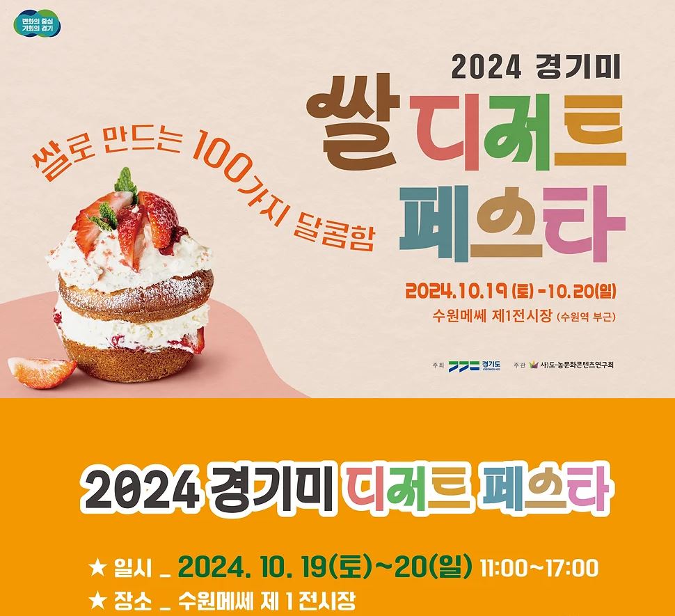 경기미 디저트 페스타는 경기미로 만든 쌀 디저트 박람회로 쌀 디저트 경연대회, 체험, 전시, 판매전 등 먹고, 보고, 즐길 수 있는 페스티벌입니다.