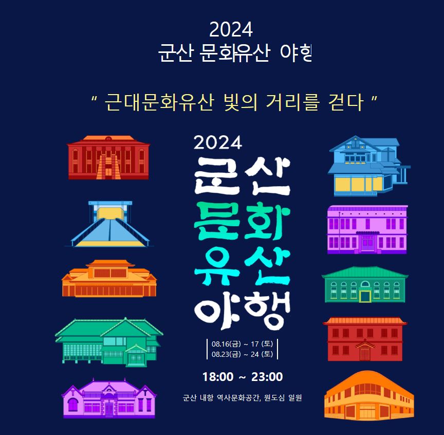 한 여름밤 군산의 문화유산을 가족, 친구, 연인들과 함께 공부하며 알아가고 다양한 먹거리와 즐길 거리를 통해 더욱 뜻깊은 순간을 가질 수 있는 군산의 야간형 문화예술축제입니다.