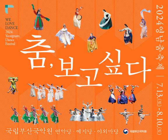 올해로 7주년을 맞은 영남춤축제는 ‘춤은 영남’이라는 신명 난 춤판을 만들기 위해 예인들의 깊이 있는 <전통춤>과 <창작춤>, 그리고 <개막공연>에서 만나게 될 하보경, 정순남, 김수악, 황무봉 명인의 생애를 바친 명무를 이어받아 펼치는 국립부산국악원 무용단의 ‘영남本색’, 춤음악에 있어 떼려야 뗄 수 없는 영남 장단의 특징을 황민왕의 맛깔스러운 강연과 공연으로 만나볼 <춤음악, 렉처콘서트>, 부산의 최초 민간예술단체 춤패 배김새(1985년 창단) 초청 <영남춤 전> 등 다채로운 무대를 마련했습니다.