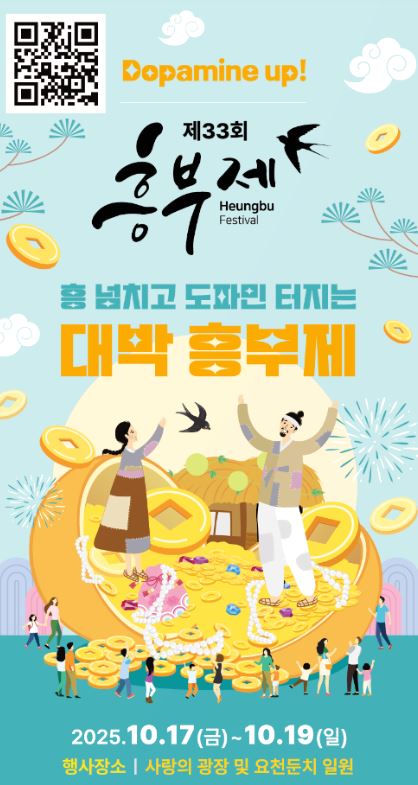 제33회 흥부제는 볼거리 가득하고, 놀거리 풍성하고, 경품으로 양손이 무거워지는 축제입니다. 흥이 넘치는 흥부존은 도파민 터지는 공연 및 무대프로그램의 공간으로 조성되며 놀거리 가득한 놀부존은 어린이를 위한 체험 및 놀이 프로그램 공간으로 가득하고 행운이 찾아오는 제비존은 대박 상품이 마구 쏟아지는 이벤트와 먹거리가 풍성하게 준비되어 있습니다.