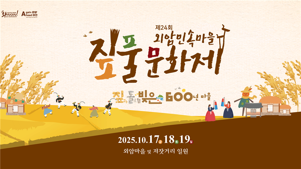 올해로 24회째를 맞는 짚풀문화제는 600년 역사를 간직한 살아있는 박물관인 외암민속마을의 가을 황금들녘에서 펼쳐지는 대표적인 농경문화축제로 마을주민들과 함께 만들어가는 축제입니다. 우리 조상의 슬기와 지혜를 엿볼 수 있는 짚풀을 활용한 다채로운 체험, 전시, 경연대회 등이 펼쳐지며 평소 들어가 볼 수 없었던 전통고택에서 가마솥밥해 먹기, 전통장 만들기, 전통주전부리 체험 등과 전통상여행렬, 초가이엉잇기 재현 등 점점 사라져 가는 민속문화를 배우고 체험할 수 있는 다채로운 행사가 펼쳐집니다.