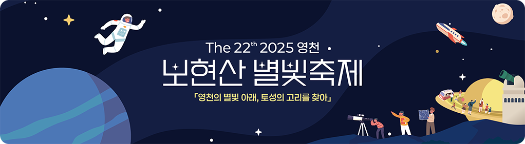 최고의 밤하늘과 아름다운 경관 등 풍부한 생태 문화 관광자원을 보유한 영천 보현산 자락에서 보현산천문과학관 및 국립 보현산 천문대 등 천문∙우주 관련 인프라를 바탕으로 한 순수 천문 ∙ 우주 ∙ 과학 체험 축제입니다. 2025년 제22회 영천 보현산별빛축제는 영천의 별빛 아래, 토성의 고리를 찾아 의 주제로 준비되어 10월 17일부터 개최될 예정입니다.