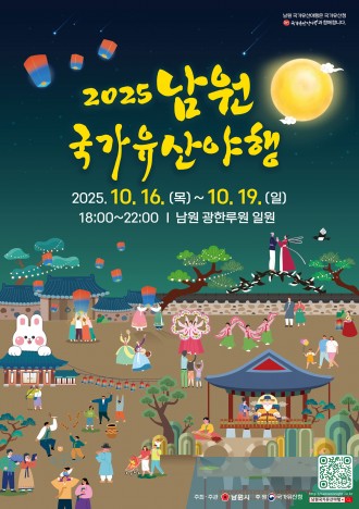 남원국가유산야행은 천년고도 남원의 빛나는 역사와 문화를 밤의 정취 속에서 만나는 특별한 축제입니다. 광한루원을 비롯한 주요 국가유산 공간이 화려한 조명과 다채로운 공연으로 새롭게 빛나며, 전통과 현대가 어우러지는 풍성한 야간 체험 프로그램이 마련되어 있습니다. 방문객은 고즈넉한 야경을 배경으로 역사 이야기를 듣고, 전통공연과 체험을 즐기며 남원의 매력을 깊이 느낄 수 있습니다.