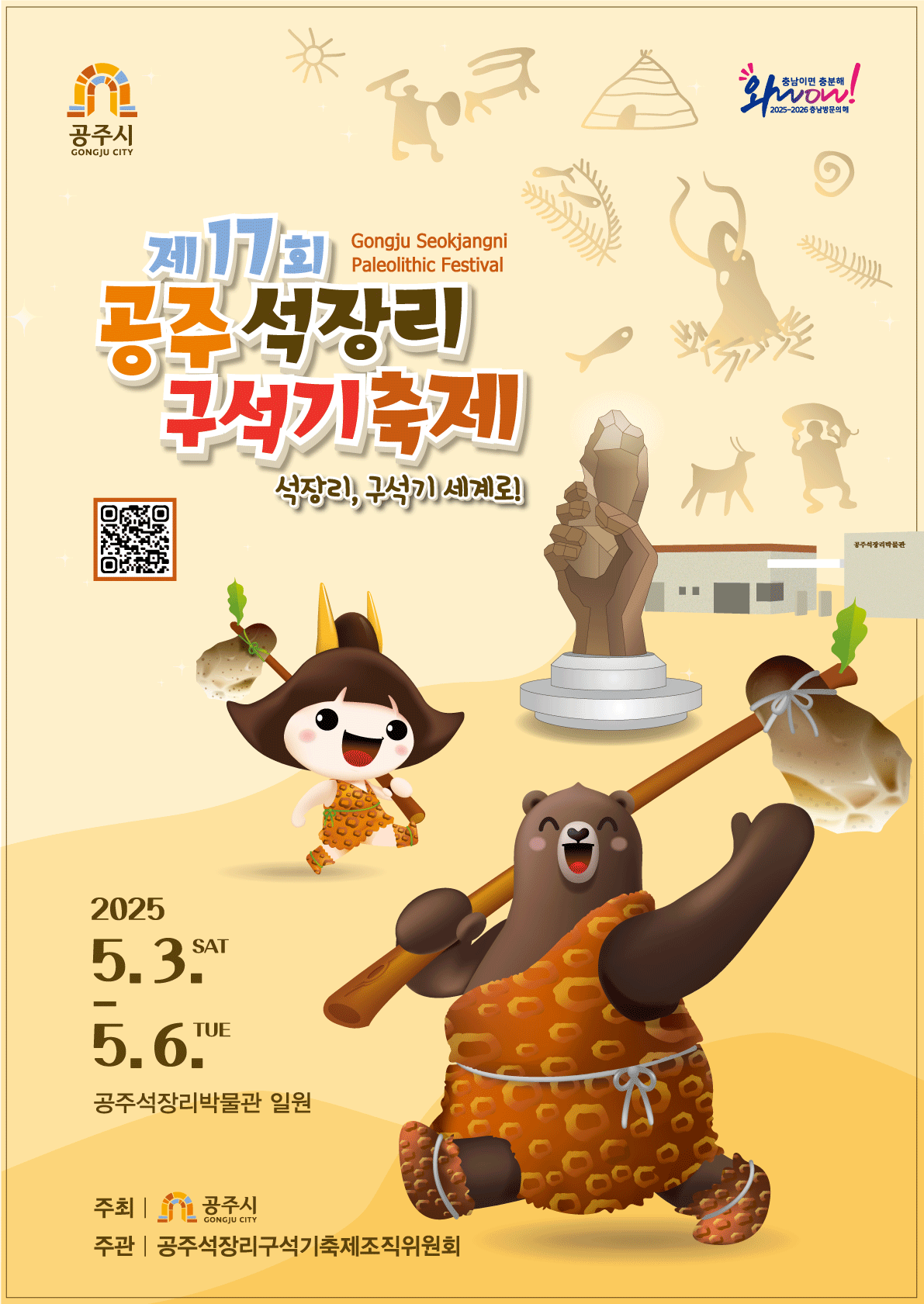 공주 석장리 구석기축제는 어린이들이 직접 체험하고 즐기며 구석기 시대 생활상의 문화를 자연스럽게 익힐 수 있는 역사문화 축제입니다. 행사장 내 시설물은 구석기 시대 삶의 터전인 막집으로 조성하여 최대한 구석기시대를 연상할 수 있도록 연출되며 아이들의 호기심과 창의성을 샘솟게 하는 교육과 놀이가 결합된 다양한 체험이 축제기간 상시 운영됩니다.