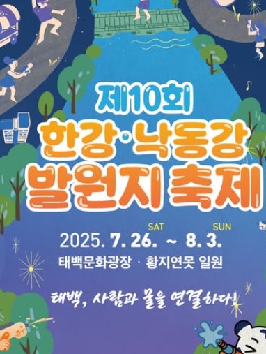발원지도시 태백에서 열리는 제10회 한강‧낙동강 발원지 축제는 ‘태백, 사람과 물을 연결하다’를 주제로, 우리나라 양대 강의 발원지인 태백에서 시작된 물길이 전국의 수계도시로 이어지는 흐름을 축제로 풀어냅니다.