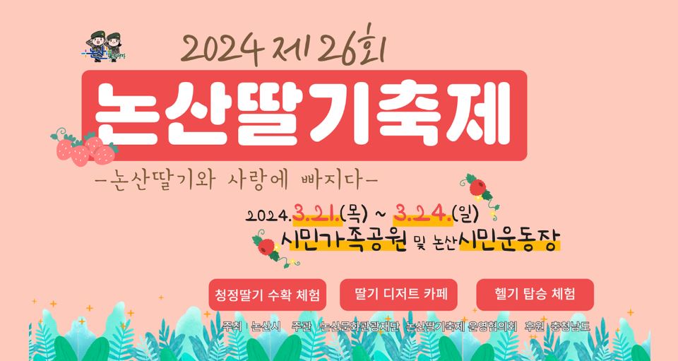 제26회 ‘2024 논산딸기축제’는 2027 세계 엑스포를 향하여 만전을 기하고 있습니다.