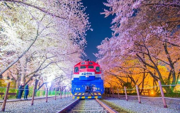 이 시기 진해는 도시 전체가 벚꽃 천국이지만 그중에서도 ‘로망스다리’로 알려진 여좌천은 1.5㎞ 구간의 개천을 따라 늘어선 벚꽃나무가 일제히 꽃망울을 터뜨려 하늘을 뒤덮으며 절경을 이룹니다. 경화역 철길 따라 늘어선 아름드리 벚나무에서 나풀나풀 흩날리는 새하얀 꽃비는 낭만 그 자체. 안민고개의 십리벚꽃길은 드라이브 코스로 일품이며, 제황산공원에 올라 진해탑에서 시가지를 내려다보면 중원로터리를 중심으로 100여 년 전 근대건축물과 벚꽃 군락이 어우러진 평온한 도시 풍경을 한눈에 담을 수 있습니다.