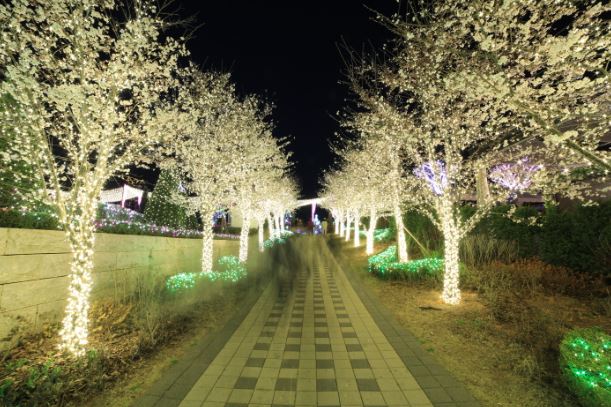 해가 진 후에는 별빛이 흐르는 정원을 테마로 1,200만 개의 조명과 봄꽃들이 어우러져 신비로운 야경을 감상할 수 있어 낮과는 전혀 다른 화려한 풍경을 만나볼 수 있습니다.  또한, 메인 정원인 자수화단을 한눈에 조망할 수 있는 대형 베이커리 카페와 레스토랑 등 다양한 먹거리를 비롯해 동물 먹이 주기 체험, 공포체험 등 다양한 체험 시설을 함께 운영하고 있어 하루 종일 다양한 콘텐츠를 즐길 수 있습니다.