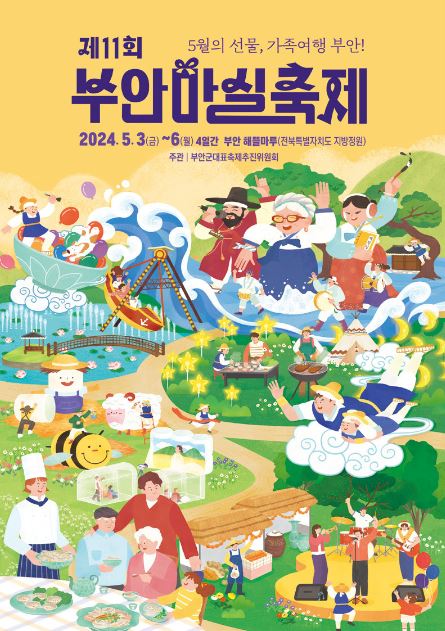 5월 3일~6일, 4일간 부안 해 뜰 마루 지방정원에서 개최되는 「제11회 부안마실축제」는 5월 가정의 달을 맞아 가족 및 친구들과 축제장을 방문하여 부안의 관광, 자연, 문화자원 등 부안의 모든 것을 다채롭게 즐길 수 있으며, 누구나 자유롭게 관람 및 참여 가능합니다.