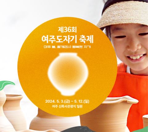 마주 봄, 함께라서 행복한 자기’를 주제로 꾸며지는 제36회 여주 도자기 축제는 천년의 역사를 지닌 여주 도자기의 우수성과 여주시 문화, 관광 콘텐츠가 어우러진 축제로, 5월 가정의 달을 맞이하여 전통도예 제작 퍼포먼스, 전통장작가마체험, 도자 경매 이벤트 등 대표 프로그램과 유아·어린이 가족 뮤지컬 공개방송 등 다채로운 프로그램이 있습니다.
