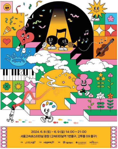 <서초뮤직 앤 아트페스티벌>은 2023년부터 시작된 서초 여름 축제로, 뜨거운 여름과 닮은 청춘의 순간으로 주제로 음악 콘서트, 전시, 청춘 토크쇼, 거리 퍼포먼스 등 다양한 프로그램을 펼친다. 2024년에도 6월 이틀간 서울고속버스터미널 광장이 문화 예술의 광장으로 탈바꿈할 예정이다.