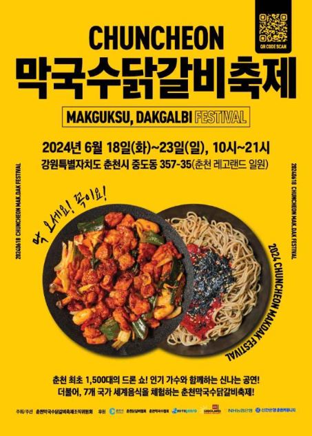 춘천의 대표적인 축제인 춘천막국수닭갈비축제가 6월 18일부터 23일까지 레고랜드 코리아 리조트 주차장 일원에서 개최됩니다.