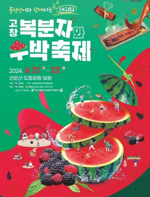 고창 농특산물(복분자, 수박, 장어 등) 홍보 및 판매, 프로그램 운영, 축하공연 등을 진행하고, 고창 복분자와 수박 등 농특산품 홍보 및 판매합니다.