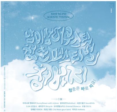 남이섬 어쿠스틱 청춘 페스티벌 은은 한국 대중음악의 발전을 위해 남이섬을 무대로 청년 뮤지션들이 마음껏 기량을 선보이며 성장하는 발판을 마련하고 관객들에게는 축제를 통한 힐링의 기회를 제공한다. 이번 2024 남이섬 어쿠스틱 청춘 페스티벌은 가장 눈부신 날이라는 주제로 사전 공모를 통해 선발된 12팀의 청춘 뮤지션들의 개성 넘치는 공연이 진행된다.